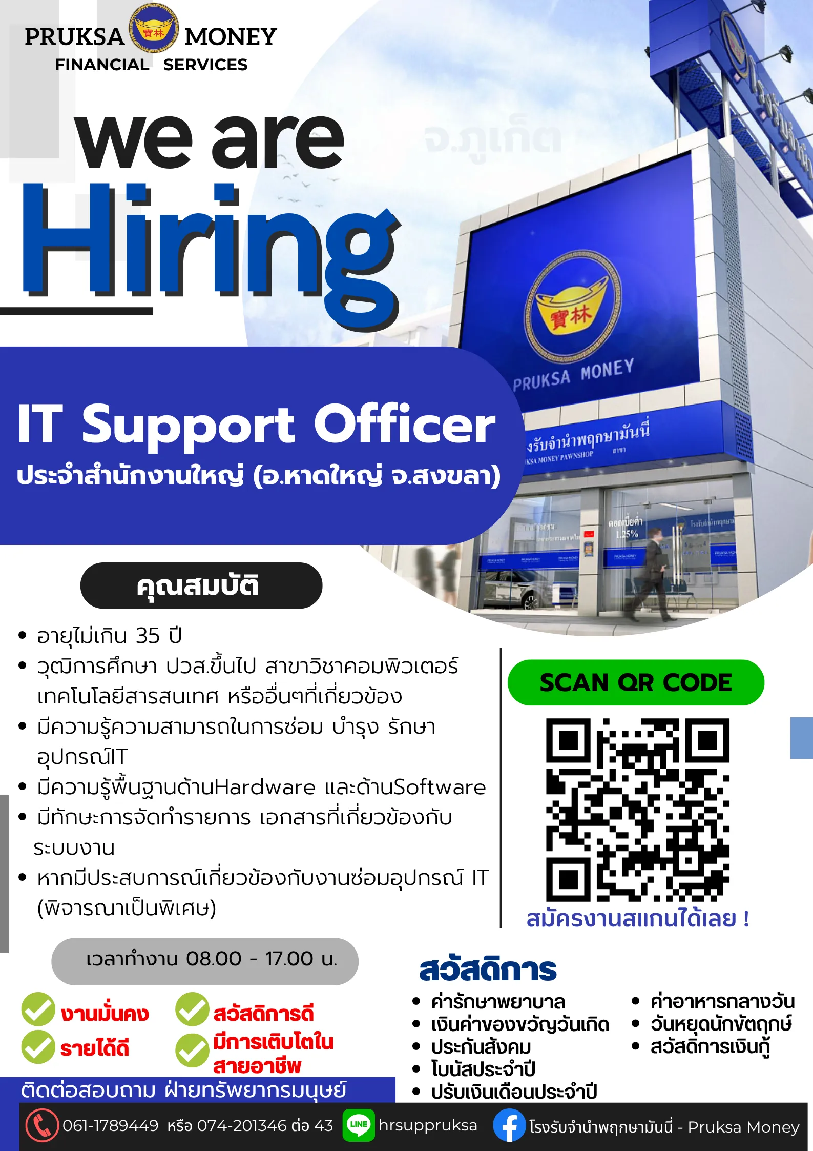 ติดตามข่าวสารสมัครงานได้ที่ เพจ Facebook : โรงรับจำนำพฤกษามันนี่ - Pruksa Money