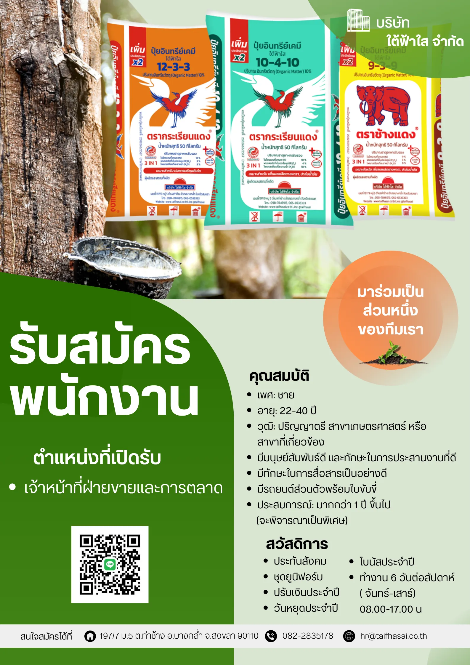 เจ้าหน้าที่ฝ่ายขายและการตลาด ประจำจังหวัดตรัง