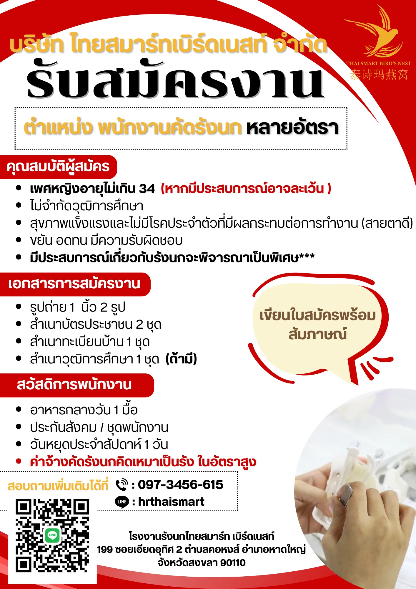 199 ซอย 2 ถ. เอียดอุทิศ ตำบล คอหงส์ อำเภอหาดใหญ่ สงขลา 90110
