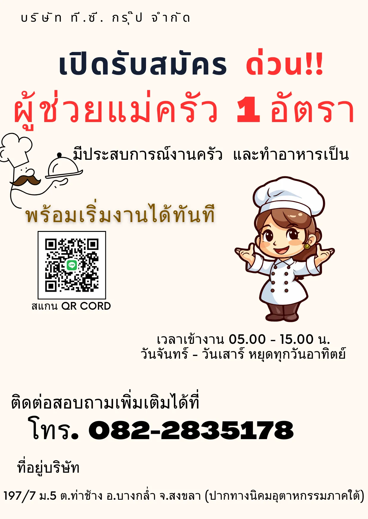 ผู้ช่วยแม่ครัว ด่วน!!!
