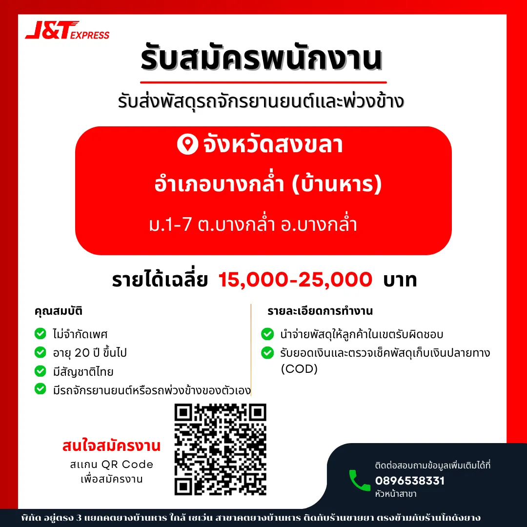 > พนักงานขนส่งพัสดุ รถยนต์ และรถ จยย. (ด่วน)