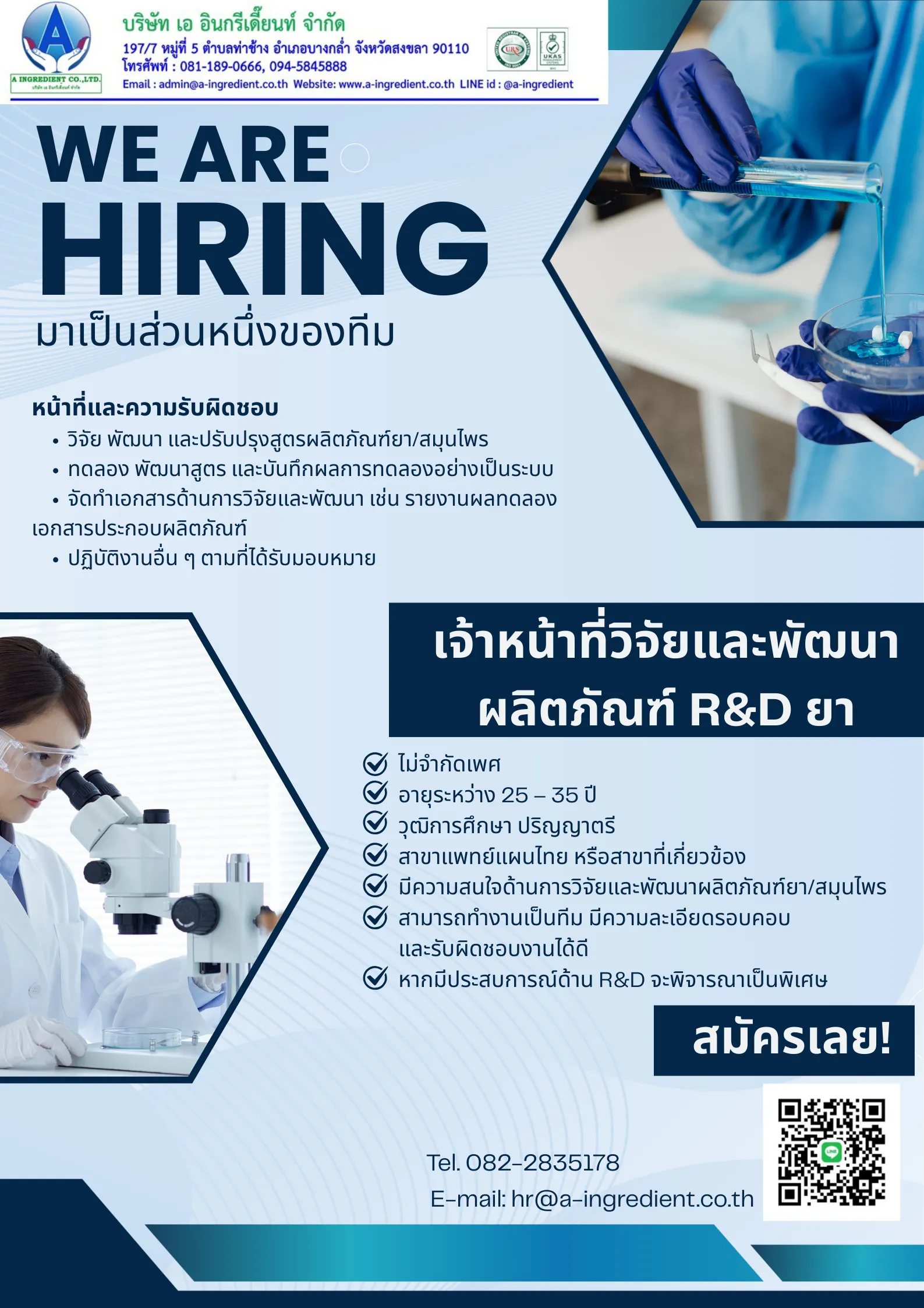 เจ้าหน้าที่วิจัยและพัฒนาผลิตภัณฑ์ R&D ยา