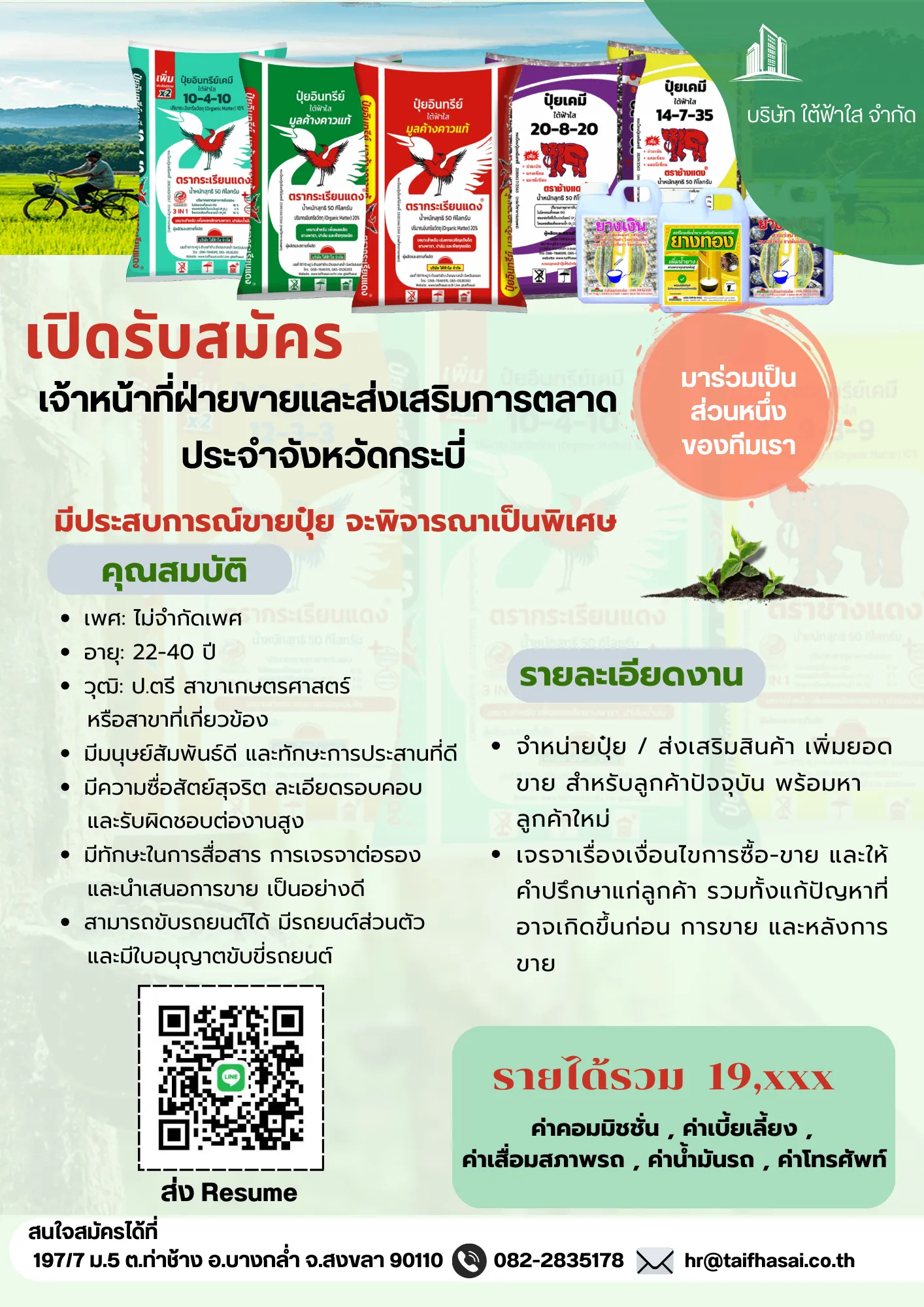 เจ้าหน้าที่ฝ่ายขายและส่งเสริมการตลาดปุ๋ย จ.กระบี่
