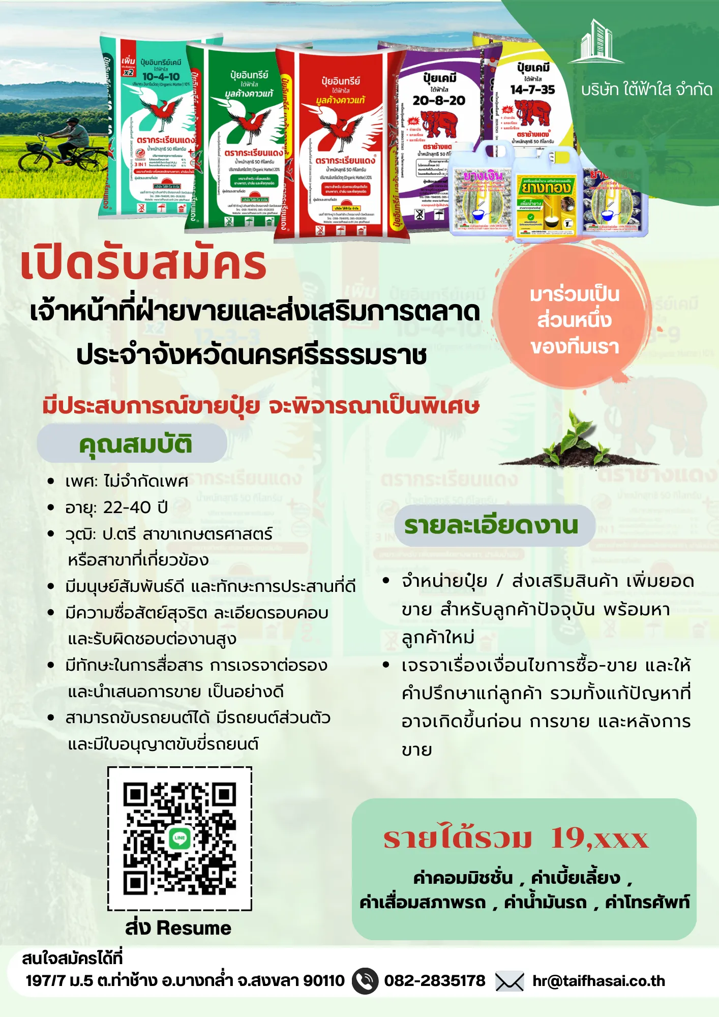 > เจ้าหน้าที่ฝ่ายขายและส่งเสริมการตลาดปุ๋ย จ.นครศรีธรรมราช