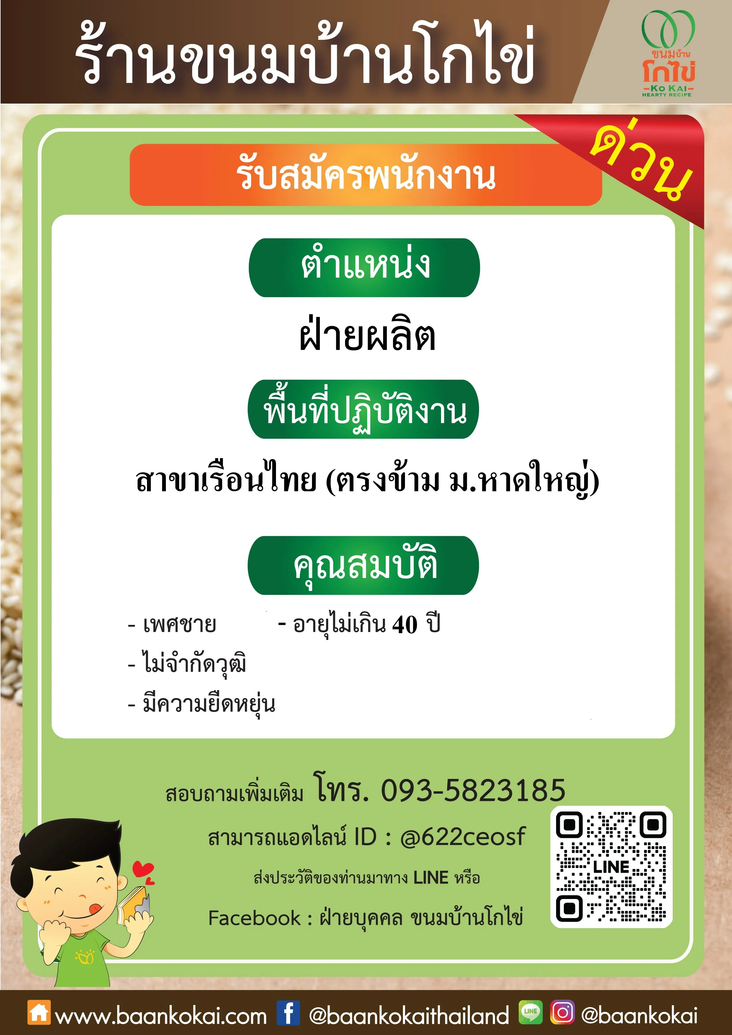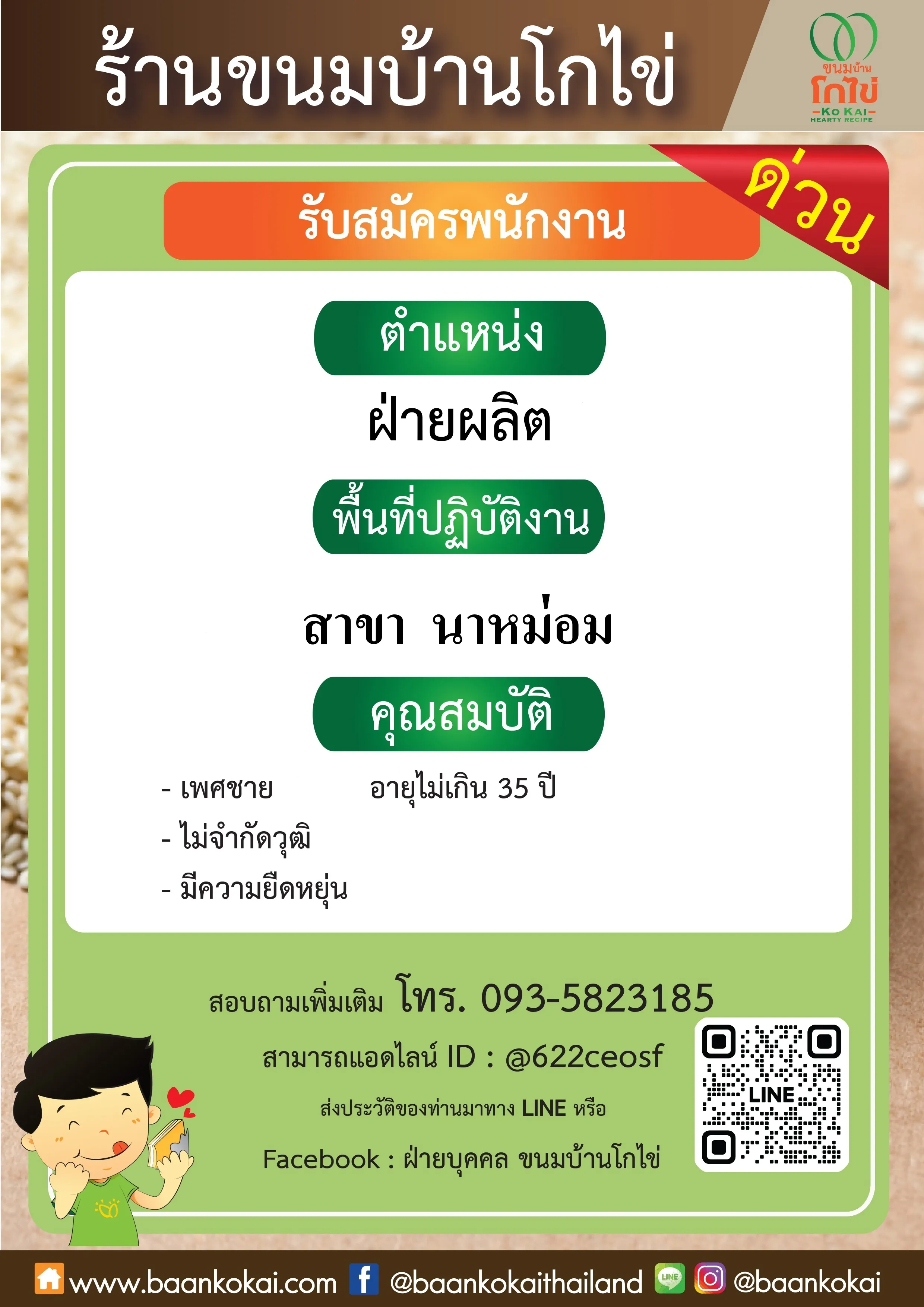 หรือส่งใบสมัครได้ที่ Line ID: @622ceosf , E-mail : hrobaankokai@gmail.com